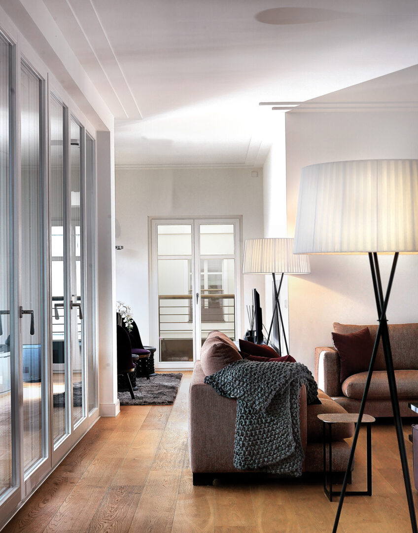 Masterful craftsmanship, generosity and a high degree of individuality characterize every detail: the heart of the home is a spacious living and dining area of around 50 m² with a flowing transition to the open kitchen. The master bedroom with en-suite bathroom and dressing room, a further bedroom with shower room as well as light natural stone flooring, heated crystal mirrors and double doors create an ambience of timeless elegance.