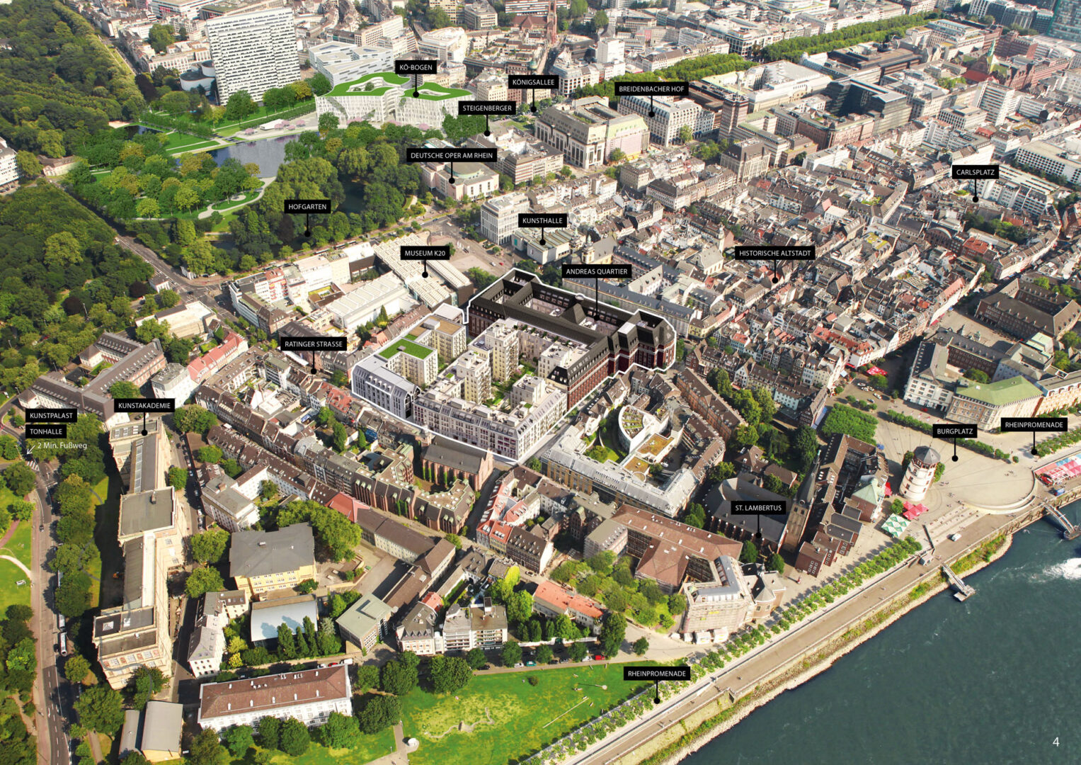 Mit dem Andreas Quartier entstand im historischen Düsseldorf ein gesellschaftlicher Mittelpunkt mit besonderer Anziehungskraft. Ein lebendiges Stadtquartier, das der Bedeutung dieses Ortes gerecht wird. Die einzigartigen Residenzen mit kunstvollen Details, die in der heutigen Baukunst Seltenheitswert haben, entfalten sich in großzügigen, vielfältigen Wohnräumen des Andreas Quartier. Ein Zeugnis gelebter Geschichte, ergänzt durch einen Concierge Service, exklusive Annehmlichkeiten und private Rückzugsorte.