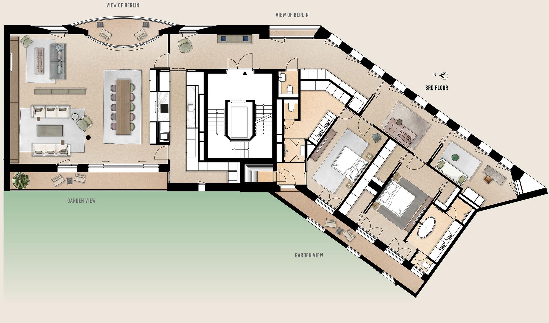 Für einen längeren Aufenthalt in Berlin gibt es viele Gründe. Aber nur eine Adresse, die höchsten Ansprüchen privater und beruflicher Anlässe in allen Facetten genügt: N°3 SCHINKELPLATZ. Zwischen der Berliner Prachtstraße Unter den Linden und dem Auswärtigem Amt, dem neuem Berliner Stadtschloss und der Friedrichwerderschen Kirche erwarten zehn Unique Residences und ein Concierge ihre Gäste. Hier wird Luxus neu definiert und zelebriert. In Form von Lage, Komfort, Privatsphäre, Design und Service, aber auch als Freiheit und als Wahl der Möglichkeiten. Ganz nach individuellen Bedürfnissen wird die jeweilige Unique Residence dabei für den Gast mal zum Logenplatz des Schauspiels, das sich Berlin nennt. Oder zur Bühne eigener Inszenierungen.