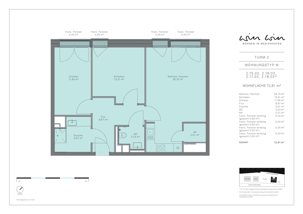 Luxus ist immer auch das Besondere und Außergewöhnliche. Mit WIN WIN kommt das gleich im Doppelpack. Die Zwillingstürme stellen das einzige Wohnensemble im Düsseldorfer Medienhafen dar. Nur hier ist ein Leben direkt am Wasser mit phänomenalem Blick über Hafen und Rhein oder die Stadt Düsseldorf möglich. Ein Leben, wie es exklusiver nicht sein könnte: Mit Concierge Service, Lounge, Gastronomie, Fitnessbereich, Dachgarten und – auf Wunsch – voll möblierten Serviced Apartments. Der ideale Ausgangspunkt für Streifzüge durch das Nachtleben mit Clubs, Restaurants und Bars im Medienhafen. Und nur eine kurze Fahrt in die City.