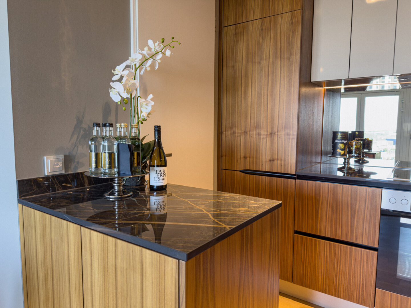 Hier trifft Design auf Servicekultur. Der Concierge im Entrée sorgt für Komfort und Sicherheit und unterstützt die Bewohner im Alltag – diskret und zuverlässig. Für sportliche Balance steht ein exklusiver Fitnessbereich mit modernen Geräten zur Verfügung. Kulinarischer Genuss erwartet die Bewohner im hauseigenen Restaurant, während die Bar den perfekten Rahmen für entspannte Gespräche und gesellige Abende bietet. Unter freiem Himmel wird die großzügige Dachterrasse mit Garten zum Lieblingsplatz – sei es bei einem Barbecue, einem Glas Wein oder einfach, um die Sonne zu genießen.